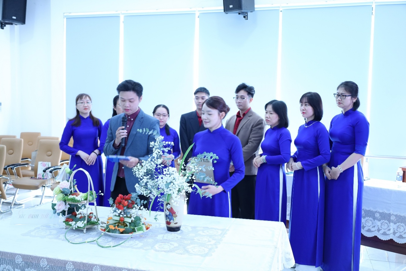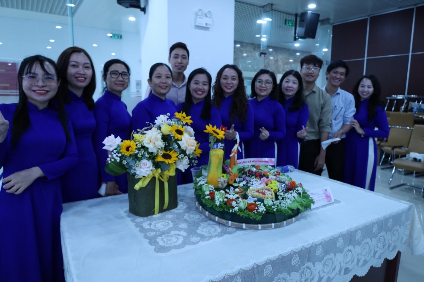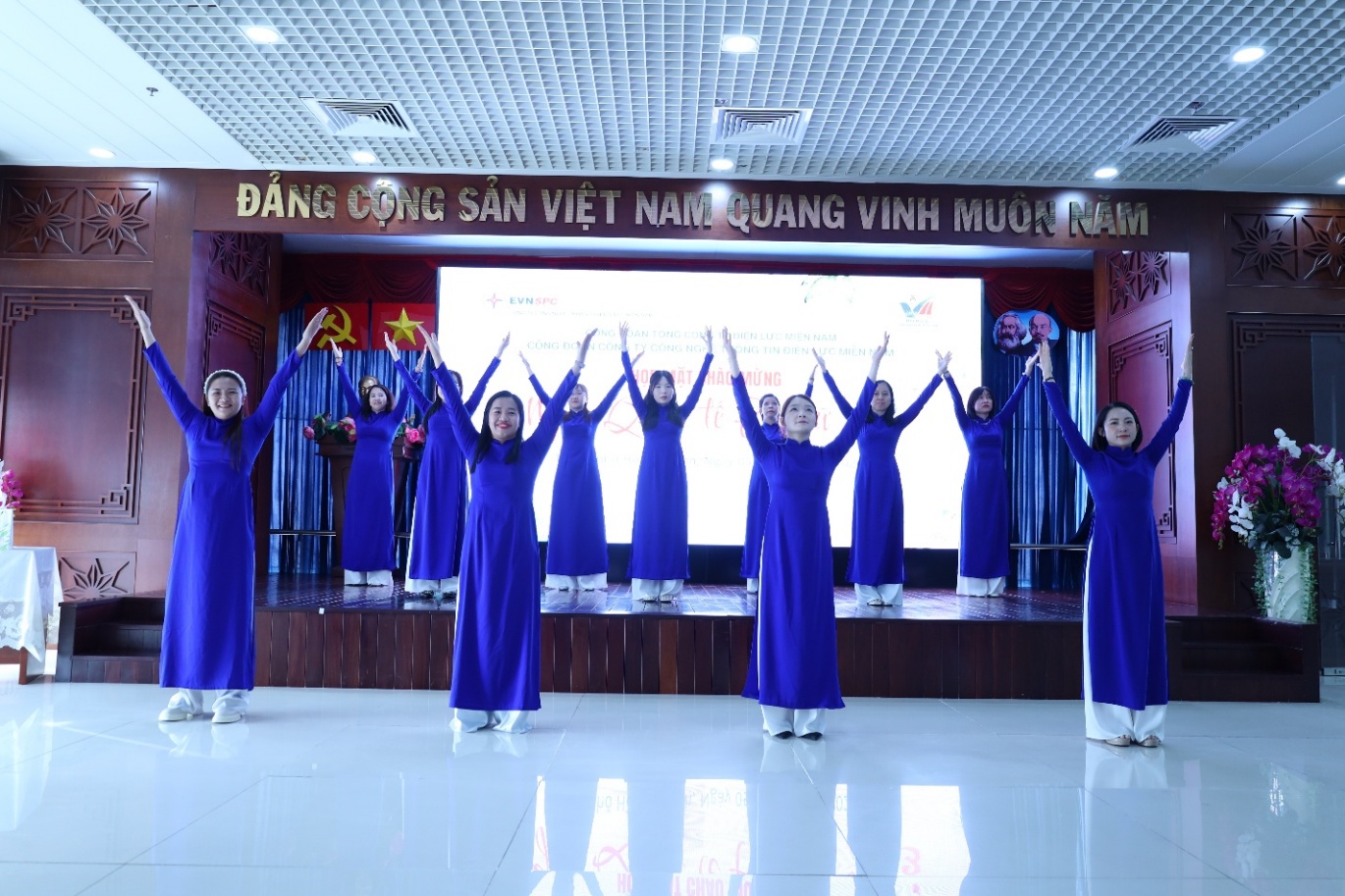 Điểm nhấn của buổi họp mặt là tiết mục đồng diễn áo dài, hòa với bài hát "Việt Nam tự hào tiếp bước tương lai". Điều đáng trân trọng là sảm phẩm mang tính chất “Tự cung tự cấp – Cây nhà lá vườn”, do các chị em chỉ tập luyện vài buổi ngắn ngoài giờ làm việc, không làm ảnh hưởng công việc chuyên môn, nhưng tràn đầy nhiệt huyết và tinh thần "không ngại khó".