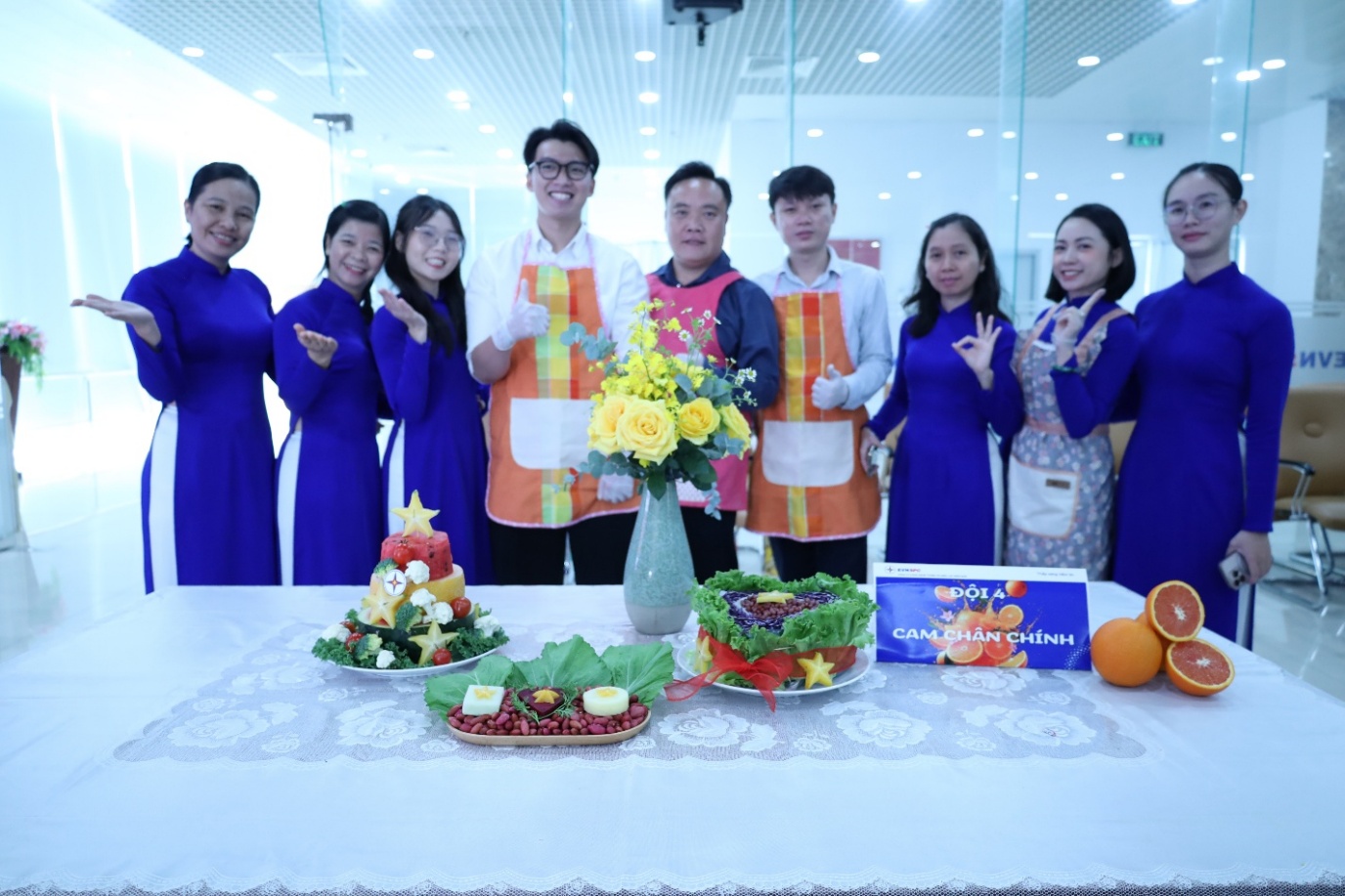 Đội SẮC MÀU NỮ IT và Đội CAM CHÂN CHÍNH đạt đồng Giải Ba tại Hội thi Trang trí rau củ chào mừng ngày Quốc tế Phụ nữ 8/3