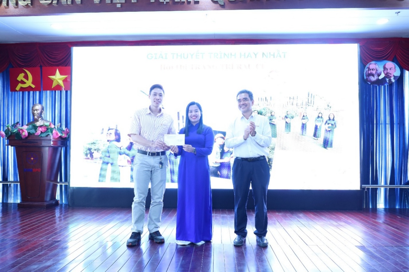 Chỉ trong 30 phút trang trí chính và 10 phút hoàn thiện, 04 tác phẩm ra đời vượt mong đợi với những điểm nhấn nhá, phá cách tạo ra những gam màu hết sức lung linh, làm cho không gian thắt chặt càng thêm chặt. Phần thuyết trình 05 phút của các nam CBCNV về hình tượng người phụ nữ SPCIT đổi mới, sáng tạo, trách nhiệm vừa gây bất ngờ, vừa khiến cả hội trường ấm lòng.